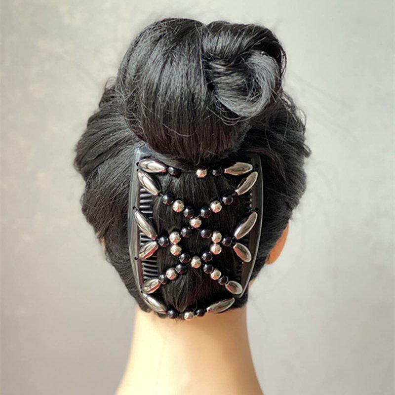 FXQHAN 2 Pcs Stretch Combs For Girl, Magic Beading Hair Comb-Double Clips Hair Styling Accessories for Women Girls Hair Beauty