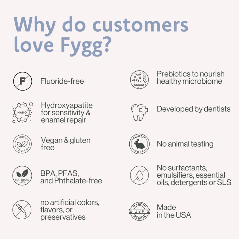- Healthy Mouth & Nature-Friendly: The Fygg tooth remineralization toothpaste isn't just good for your mouth—it's good for your whole body and the planet. Our alternative fluoride toothpaste for adults comes in a recyclable tube, offering a choice that aligns with your values while providing effective dental care
