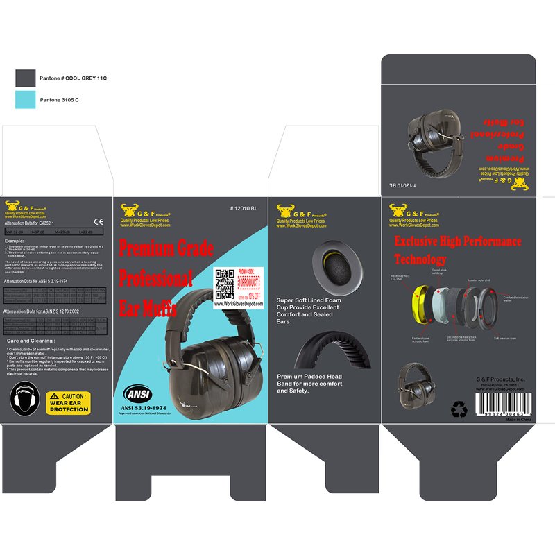 G & F Products 12010BL Highest NRR Safety Muffs-Professional Defenders Adjustable Headband Ear Protection, Shooting Hearing Protector Earmuffs Fits Adults to Kids, one Size, Black