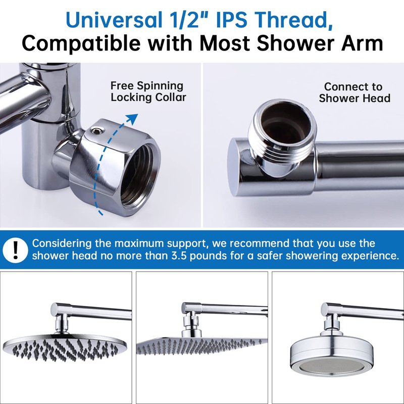 - ►STANDARD SIZE: The connection of this extender is standard 1/2". Compatible with most shower arm in US.