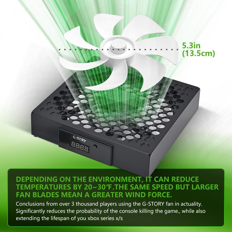 - 🍃Easy to Install: Just simply place the cooling fan on your console, and connect the cable to your xbox console, it will start to work. If you have any questions about using our product, please feel free to contact us. G-STORY is always here for you.