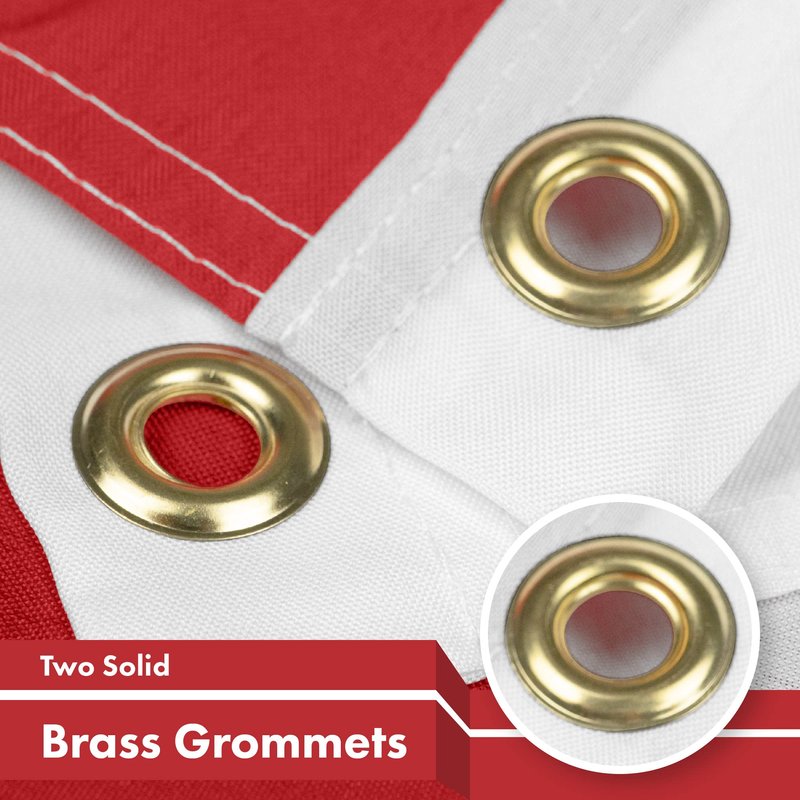 Size: 3 x 5 Ft. Made From Deluxe Heavyweight 150D Polyester Grade. Printed with Double-Needle Lockstitch with 4 Rows on the Fly Hem. Heavy Duty Polyester Canvas Heading with Two Solid Brass Grommets. This Durable Flag can be displayed either indoors or outdoors.