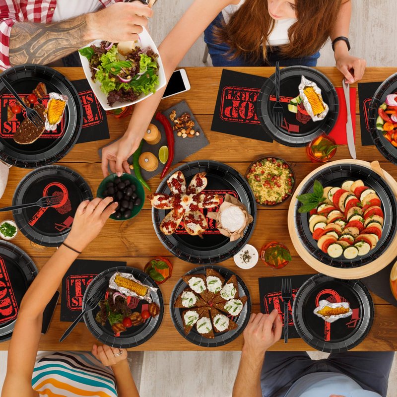 - QUALITY MATERIAL: Our tablewares are made of food grade material, high-quality napkins are soft and highly absorbent, non-taste, safety and durable. Provide a hassle-free dining experience.