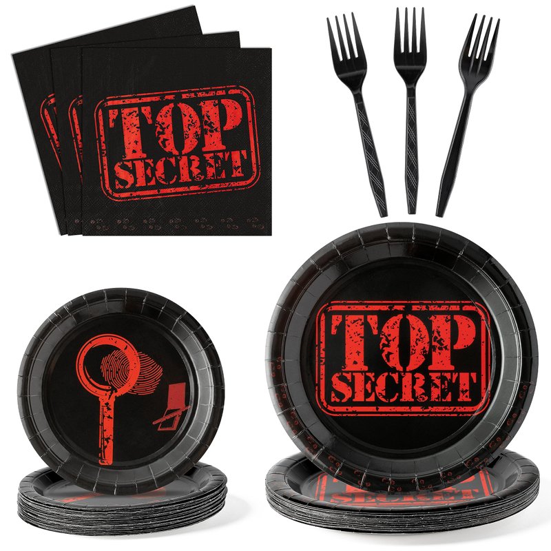 - WIDELY APPLICATIONS: Our top secret spy tableware set can be used for various occasions. Such as top secret spy themed party, spy themed birthday party, secret agent themed party, detective themed party, baby shower and so on. And it's also a great supplies for picnics, which add a touch of mystery and excitement to the party.