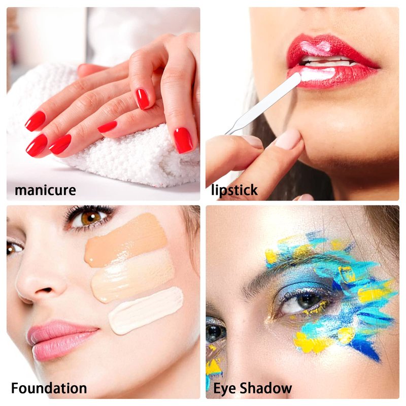 - Wide Application: The stainless steel spatula is ideal for professional salon or home use, and the palette can be used for make-up mixing and DIY nail art. Ideal for mixing foundation or eye shadow, nail polish, pigments, lash glue, etc. The plate can also be used as a mirror
