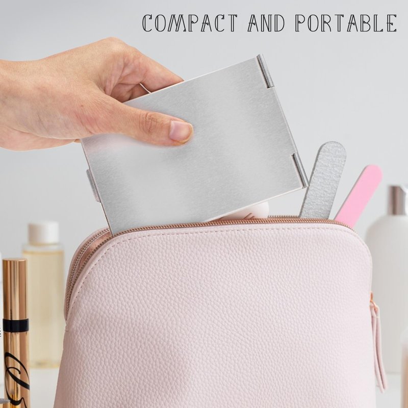 - Portable Folding Mirrors: The thickness of the mini mirror when folded is approximately 1cm, and can be easily put in your travel bag or handbag. This mirror can be hand-held or placed freestanding on a table without any support by simply flipping the lid over. Ideal for bathrooms, bedrooms, dressing tables, table tops, desks etc.