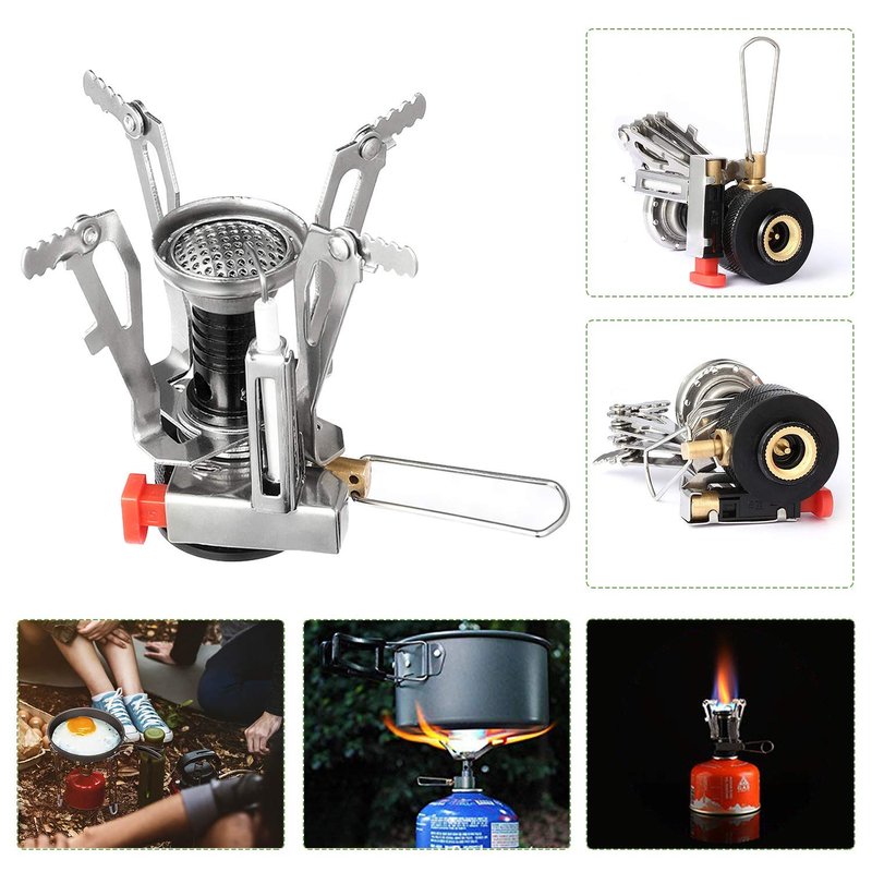 - BEST PRICE/SAVE MONEY - The package includes one Non-stick pan pot bowl spoon set, Mini Stove with Piezo Ignition. A mesh bag was included. This outdoor cooking set is designed perfectly for one or two people.