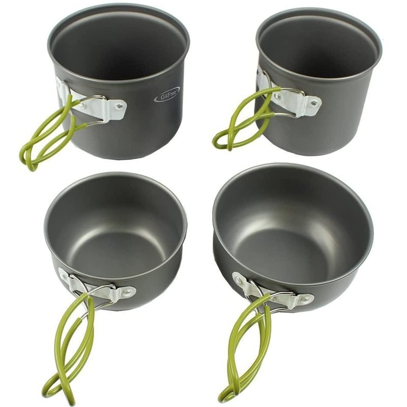 G4Free 2/4/13 PCS Camping Cookware Mess Kit Hiking Backpacking Picnic Cooking Bowl Non Stick Pot Knife Spoon Set (4PCS)