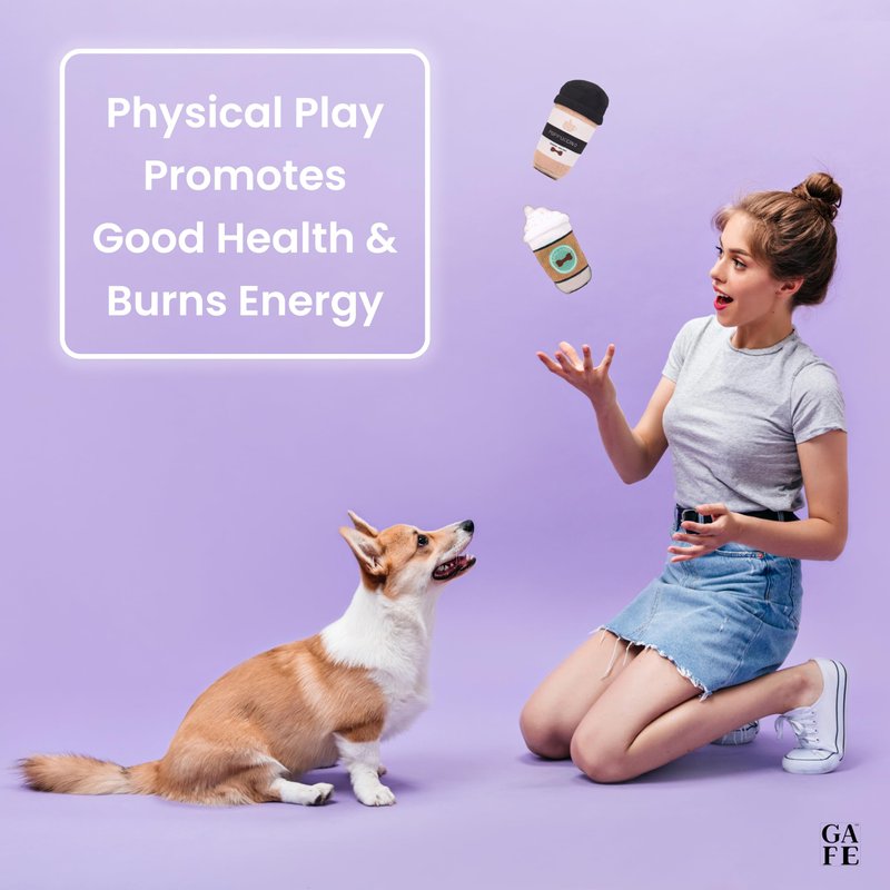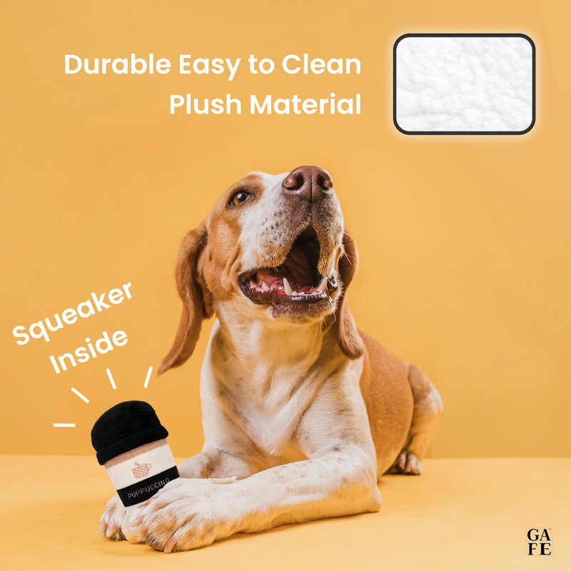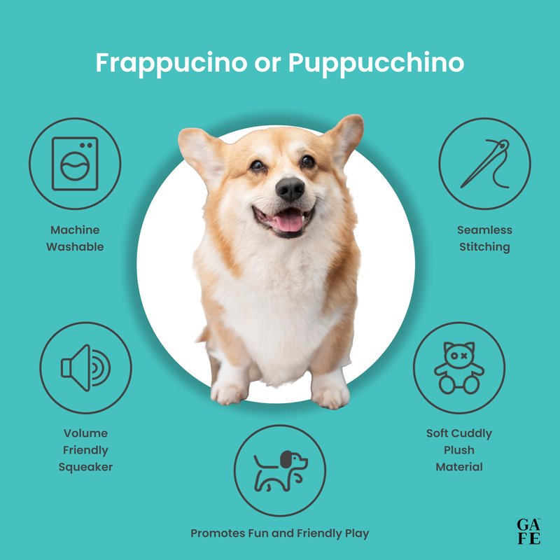 Indulge your furry friend in a playful coffee break with our Perk-Up Pooch Coffee Cup Dog Toy! This charming toy, designed to resemble a cute coffee cup, is perfect for dogs who love to chew, fetch, and play. Made from durable, non-toxic materials, it ensures hours of safe entertainment. With its squeaky center and soft exterior, your puppy will be captivated by the delightful sounds and textures. Whether it's an afternoon of fetch or a quiet moment of snuggling, this coffee cup toy is the perfect pick-me-up for your puppy. DISCLAIMIER: GA FE products are designed to meet child safety standards. Our toys are tougher than standard plush toys, but NOT indestructible. Even though no dog toy is indestructible, our toys are tougher and last longer than standard soft plush toys.