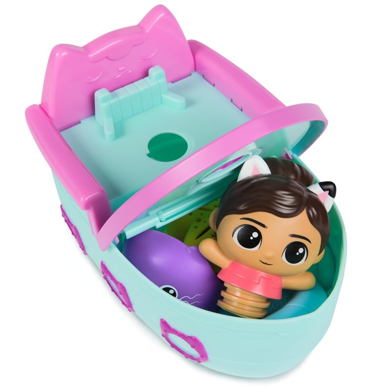 - EXCITING TODDLER TOYS: Submerge Gabby to fill her with water and squeeze her to squirt water out, then take Gabby off her floater to plug her into the cruise ship deck and float around the bathtub