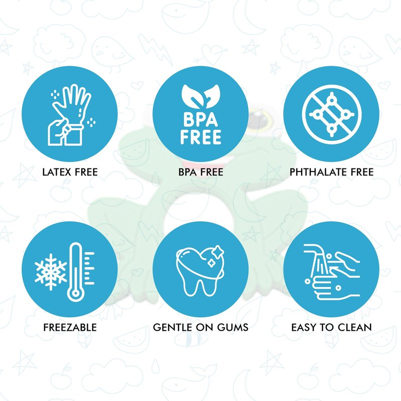 Teething is a tough phase, more so for parents than for babies. While there's nothing you can do to expedite the painful teething process, our baby hand teether makes the process bearable for both babies and parents. As they cut more and different teeth, our infant teether allows for a little counter-pressure, soothes their aching gums and helps manage the painful symptoms of teething.