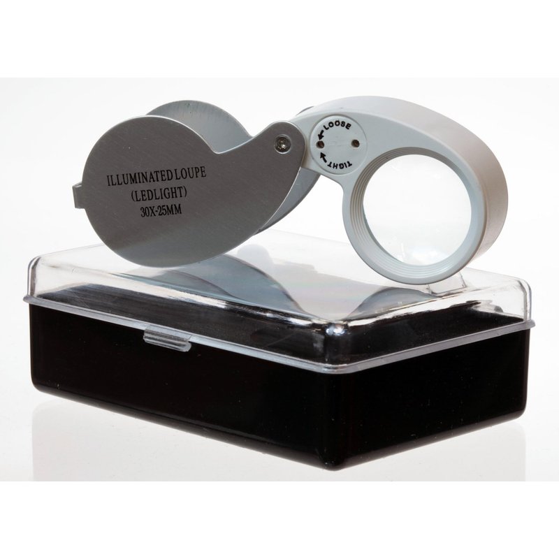 - Illuminated 30x high powered magnifying glass loupe with 20mm diameter optical glass lens