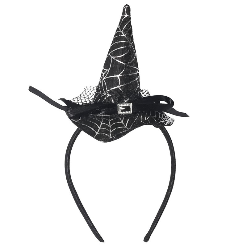Featuring a cute pointed cap adorned with spider web patterns and a black bow, this Halloween headband is the perfect festive touch for you.