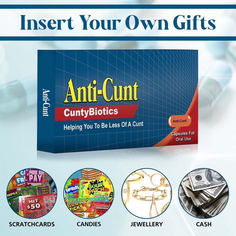 Gag Gifts for Men Funny Gifts Prank Pill Box Gifts for Men Christmas Gifts Funny - Prank Gift Birthday Gift for Dad Brother Friend Presents for Men Empty Prank Gift Box Fill It with Candy (Anti-C*nt)
