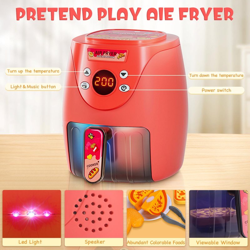 - The Best Gift:If you are looking for inspiration to buy a gift. do not hesitate to take it home. This will be one of the best purchases you will ever make .The air fryer set is a role-play for 3-8 year olds.