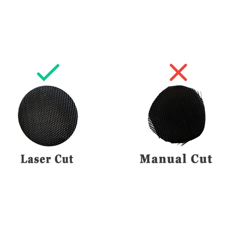 - Each round patch is laser cut, not scissor cut, to maintain integrity of the mat thread material.