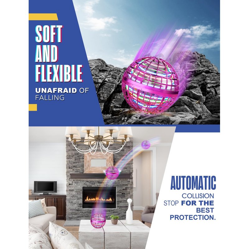- 【High-Tech Flying Orb Ball Set of 2】Experience the fun with our set of two hand-controlled drone balls, each featuring a gyroscope and smart AI chip. It glows in vibrant colors, offering varied flight paths, skills, including boomerang effects