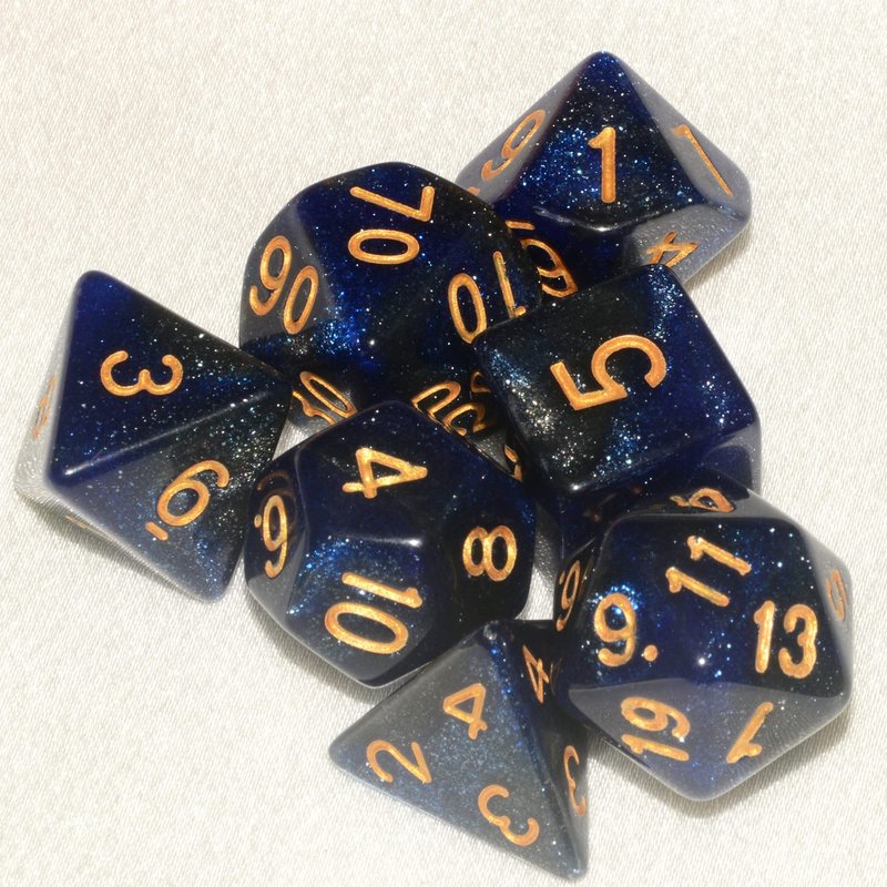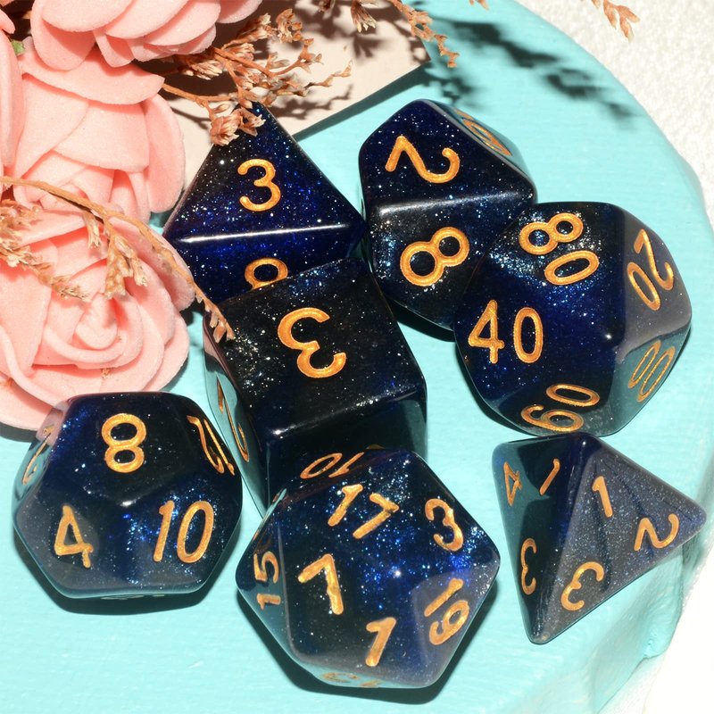 Galaxy DND Dice 7Pieces, Glitter Sparkle Cosmic Blue Black Mixed Polyhedral DND Dice for RPG MTG Table Game Dice
