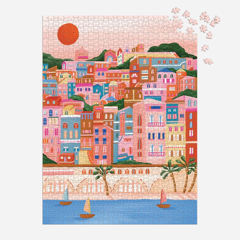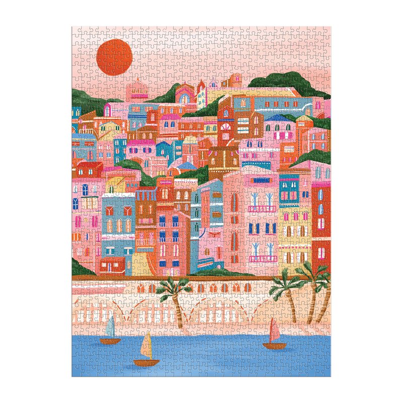 Galison French Riviera – 1000 Piece Puzzle Fun and Challenging Activity with Bright and Bold Artwork of French Architecture by The Sea for Adults and Families