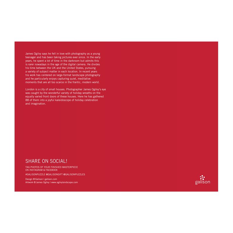 - BRIGHT AND BOLD ARTWORK – This colorful puzzle features 88 Christmas handmade wreaths photographed by UK photographer James Ogilvy.