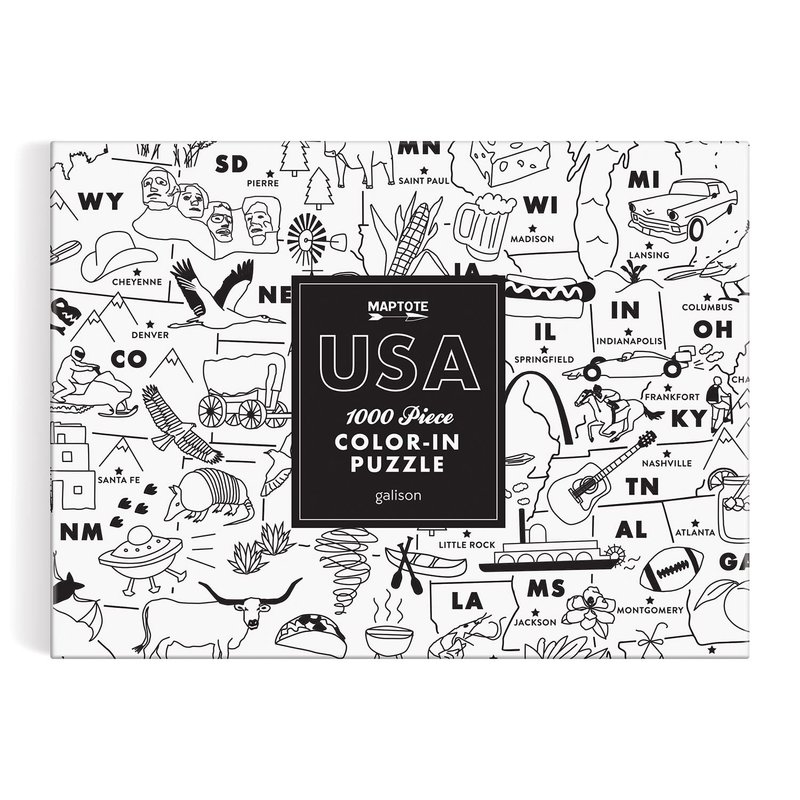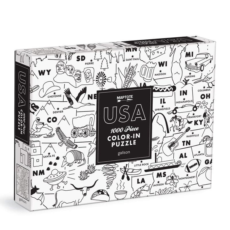 - 1,000 PIECE PUZZLE – The Maptote USA Color-In 1000 Piece Puzzle from Galison is a wonderful puzzling activity your whole family will love piecing together. The box also includes a puzzle image insert for reference.