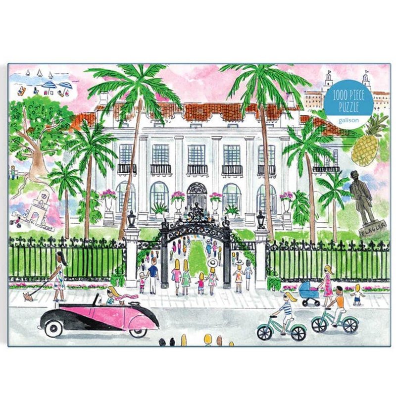 - 1,000 PIECE PUZZLE: The Michael Storrings A Sunny Day in Palm Beach 1000 Piece Puzzle from Galison is just the right amount of challenging and fun for a few days of activity. The box also includes a puzzle image insert for reference.