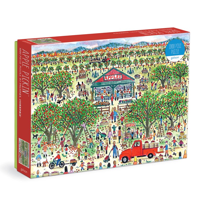 - 1,000 PIECE PUZZLE – The Michael Storrings Apple Pickin' 1000 Piece Puzzle from Galison is just the right level of challenge for a few days of puzzling fun. The box also includes an insert about the artist and the image for reference.