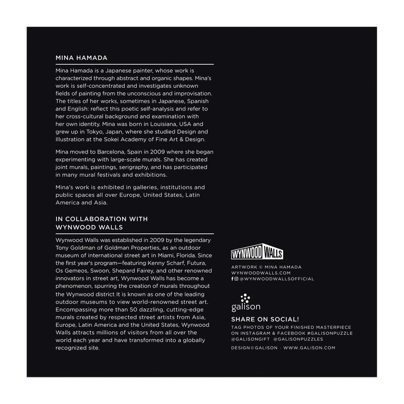 - BEAUTIFUL DETAILS – This exquisite jigsaw puzzle features the bright and bold artwork by Mina Hamada, capturing the colorful abstract and organic shapes found in our everyday lives. When completed this puzzle can be turned into a piece of art to brighten your home!