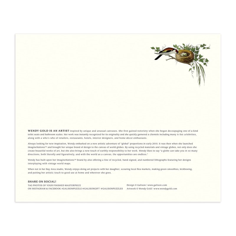 - 1,000 PIECE PUZZLE – Wendy Gold's stunning collage artwork in the State Birds 1,000 Piece Puzzle from Galison makes for a challenging and gorgeous puzzle that your whole family will love piecing together. The box also includes a puzzle image insert for reference.