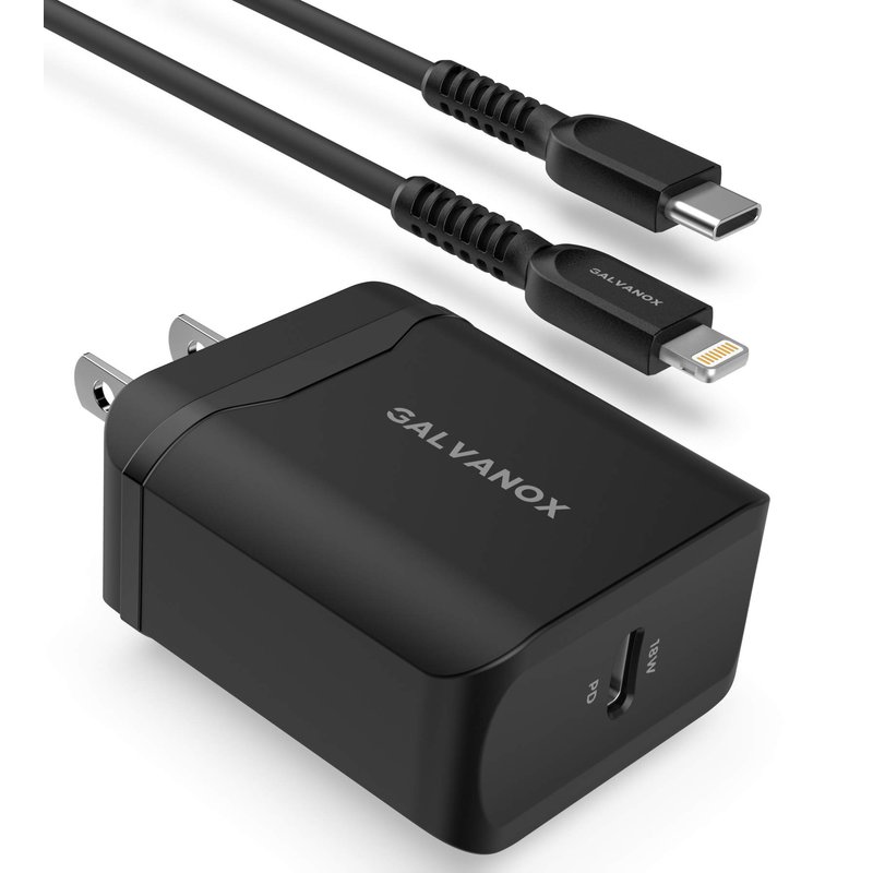 Galvanox iPhone Charger with Wall Plug (Apple MFi Certified) Fast Charging USB C to Lightning Cable with 18W Adapter for 2020 iPhone SE/11/12/13 Pro Max (Black)