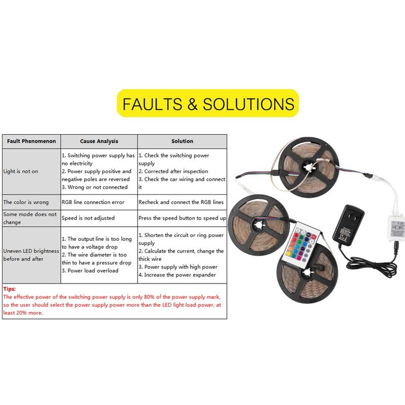 - 【24 KEY IR REMOTE CONTROLLER】 16 Static Colors with brightness increase and decrease. 4 Light Patterns: Flash | Strobe | Fade-change | RGB smooth-change. Turn On / Off or Adjust as you like.