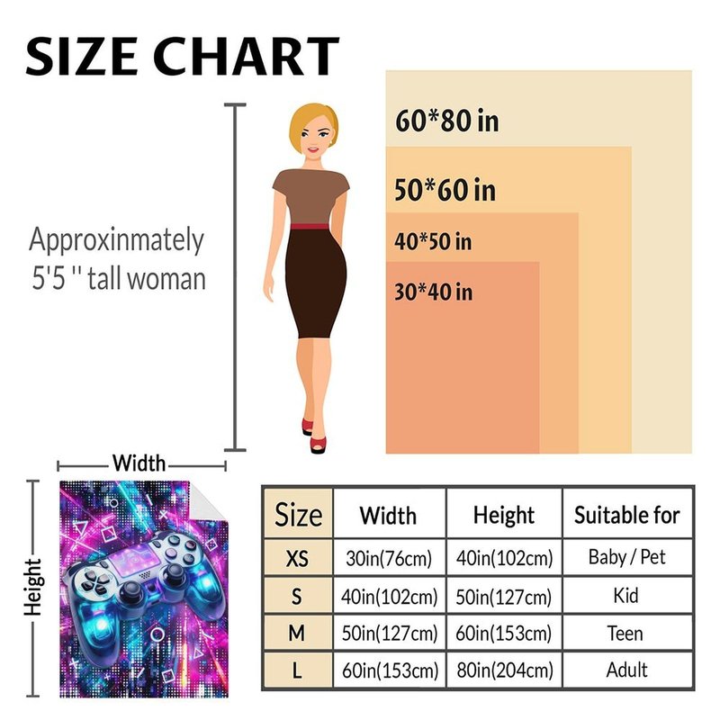 - Versatile Sizes Options: Available in four different sizes – 30"x40", 40"x50", 50"x60" and 60"x80" – These Gaming blankets are suitable for various purposes, use them as lap blankets, crib blankets, throw blankets or even as plush and fluffy bedding, such as when watching TV or camping, reading a book, snuggling or cuddling