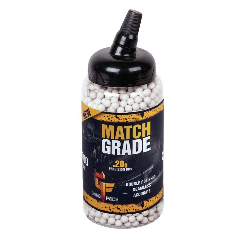 - Style: Game Face SAP2020E Match Grade .20-Gram White Biodegradable Airsoft BBs (2000-Count)