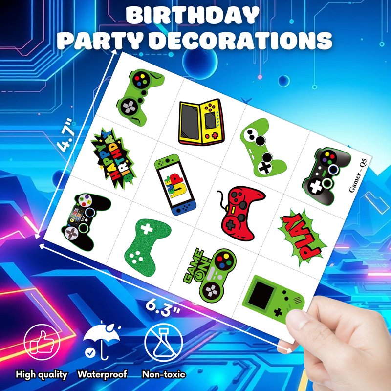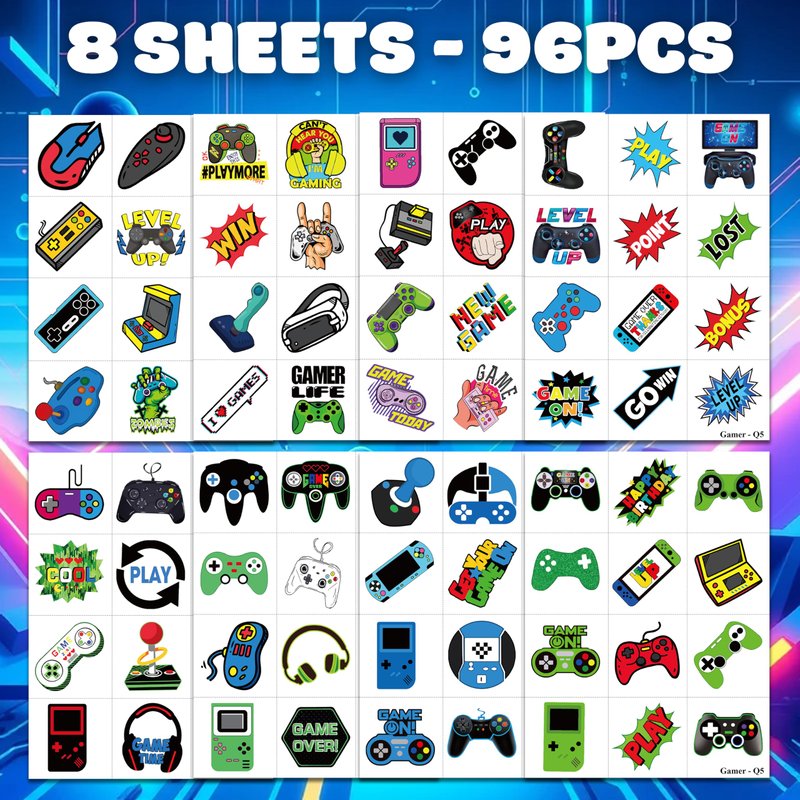 Game Temporary Tattoos Themed Birthday Party Decorations Supplies Favors Decor Cute Tattoo Stickers 8 Sheets 96 PCS Gifts for Kids Boys Girls Games Classroom Rewards Prizes Carnival Christmas