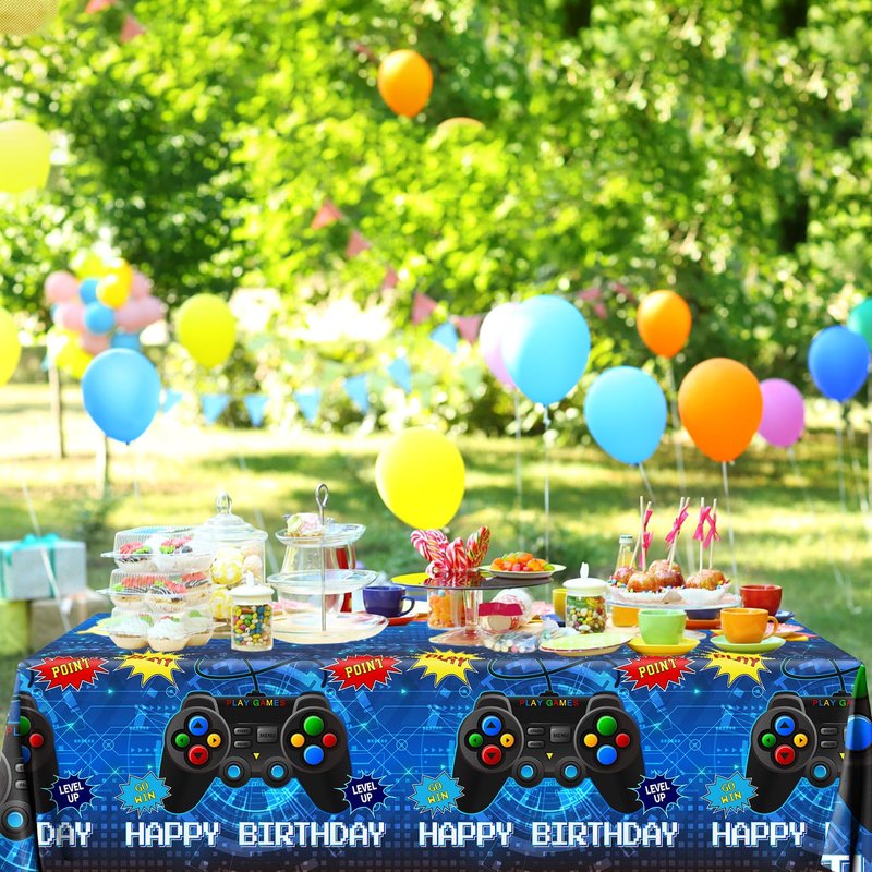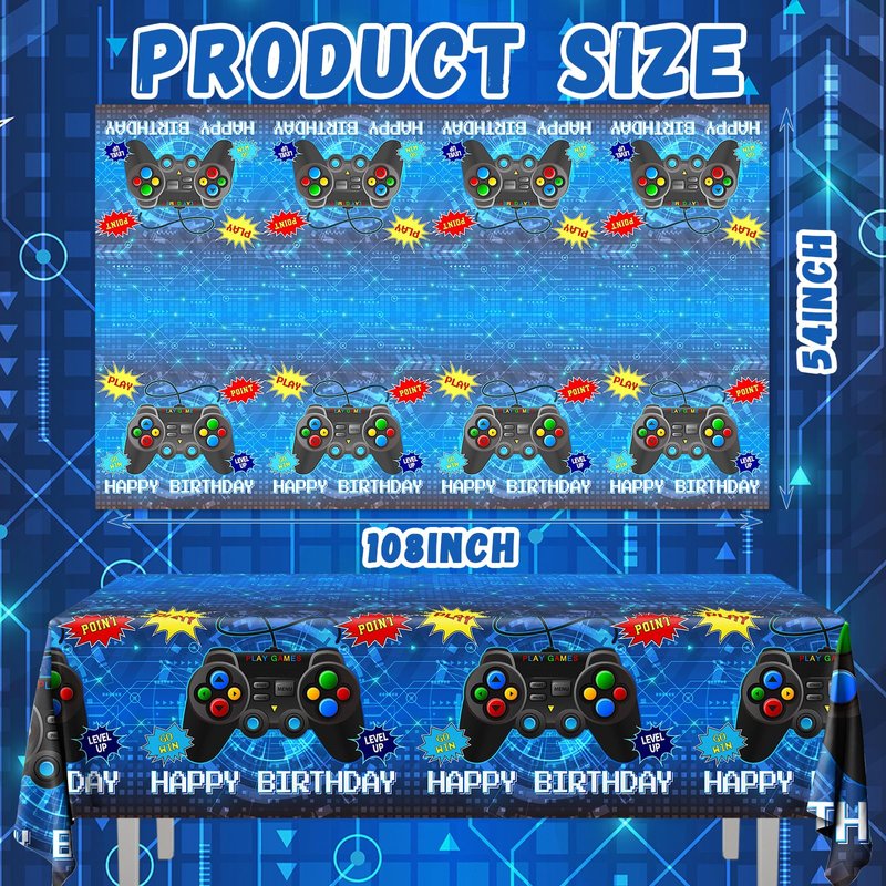 - 【VIDEO GAME TABLECLOTH】The colors of the gamer birthday party decorations tablecloth are based on blue, with a cool game console handle design,this game theme birthday party decorations tablecloth will make your birthday party interesting and attractive. Suitable for game themed birthday party,gamer party supplies birthday ,boys birthday,etc.