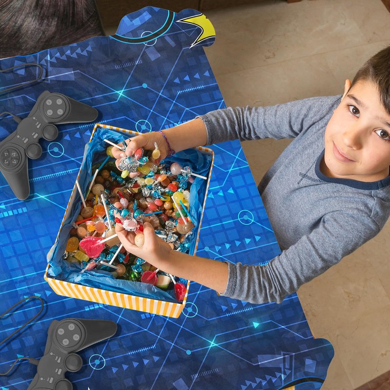 The colors of the gamer birthday party decorations tablecloth are based on blue, with a cool game console handle design,this game theme birthday party decorations tablecloth will make your birthday party interesting and attractive. Suitable for game themed birthday party,gamer party supplies birthday ,boys birthday,etc
