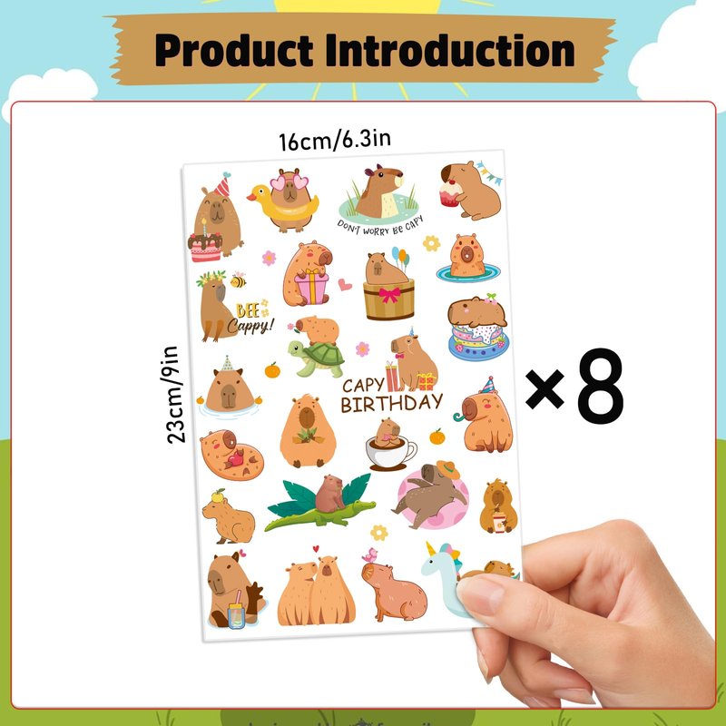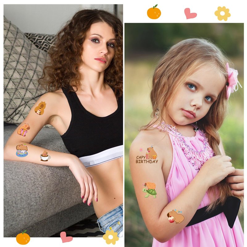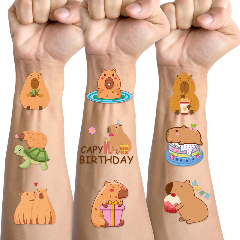 - Capybara Party Favors: There are 8 tattoo stickers in total, with more than 25 patterns. You can get a total of 200+ Capybara-themed tattoos. The cute capybara tattoo can be used with friends.