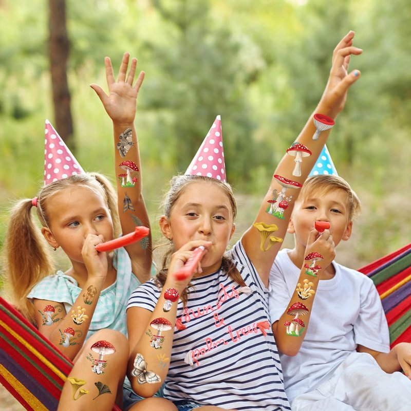 - How to Use: Our tattoo stickers come with application steps so you can get multiple tattoos easily. Perfect for kids birthday parties, mushroom parties, jungle themed baby showers and more.