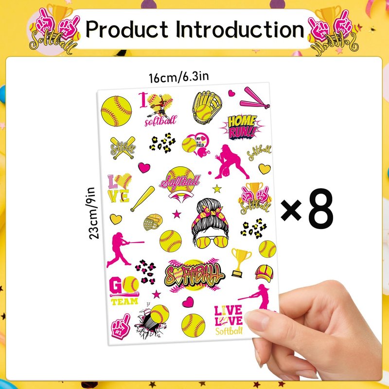 - Softball Temporary Tattoos: You will receive 8 Softball themed tattoo stickers, each with more than 20 different patterns, and 240+ small tattoo stickers are enough for you and your friends to use together.