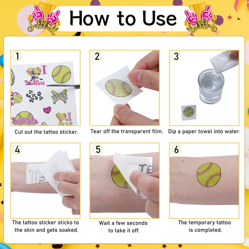 - Widely Used: Softball temporary tattoo stickers can be used as classroom rewards for kids, softball party gifts, softball party decorations, softball birthday party supplies, softball supplies gifts, etc., give her who loves softball a surprise.