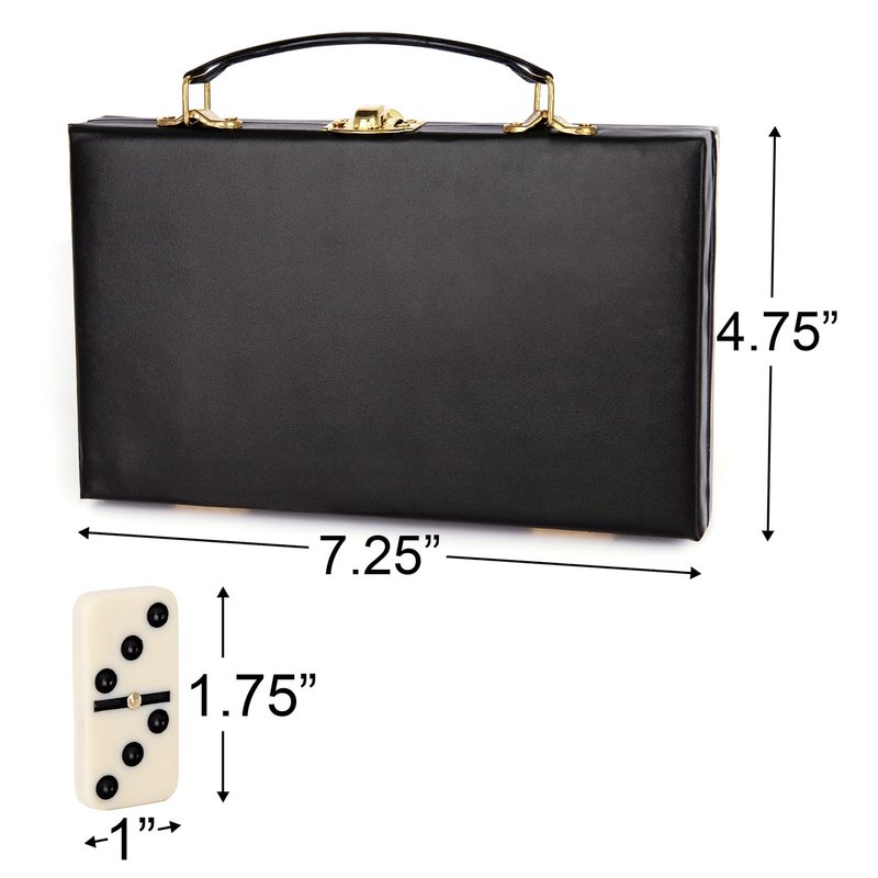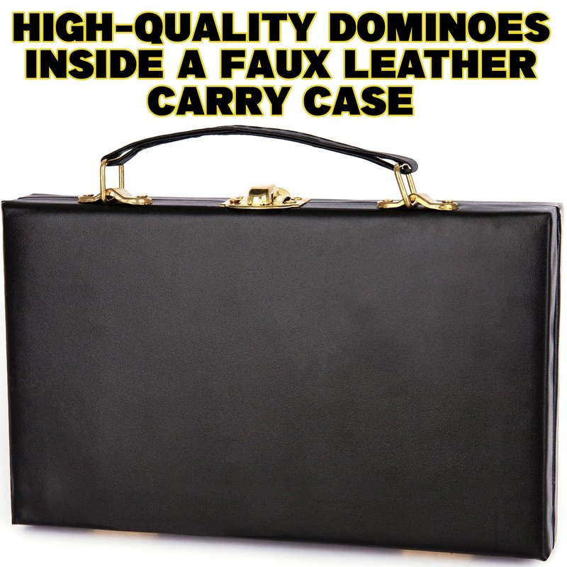 - QUALITY YOU’LL LOVE: Invest in dominoes for kids and adults designed to last. We’ve crafted the tiles using chip-resistant material with a premium feel, and made the carrying case with faux leather for a striking touch. A handle on the case makes these perfect travel dominos.