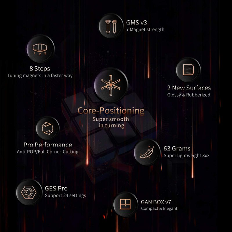 - INNOVATIVE MAGNETIC CORE - The time has come for magnetic core positioning system! In GAN 11 M Pro Speed Cube, GAN’s core has one side of the magnets, and corner pieces the other. When the cube turns, the distance of magnets is always within a certain range, resulting in low tactility and better stability of magnet strength. You'll feel how amazing this blend of speed and control in the very first turns!