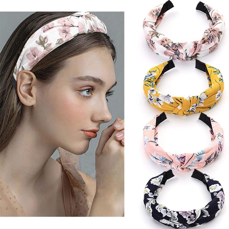 Gangel Boho Headbands Wide Floral Style Cloth Hair Bands Cute Knot Head Bands Fashion Headwear Accessory for Girls and Women(pack of 4)
