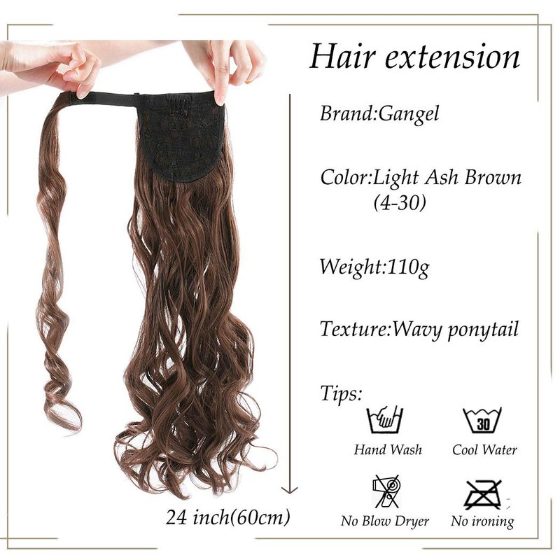 Gangel Ponytail Extension Curly Wavy Pony Tails Wrap Around Hairpiece Claw Synbthetic Clip in Hair Extensions Magic Paste Hair Wraps Hair Pony Tail for Women and girls(Pack of 1)Light Ash Brown(4-30)