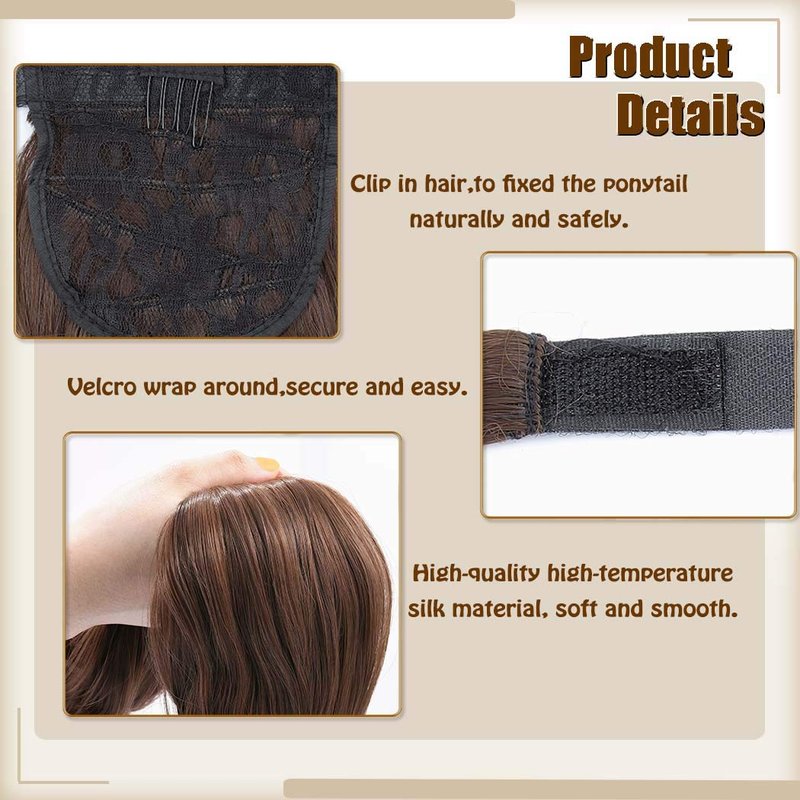 - Ponytail is made of high-quality high-temperature silk material,which has bouncy and natural luster, which will make you look natural when you wear fake hair.Hair pieces will not easy to tie.There are variety colors,you may choose one similar hair color to get a natural look.