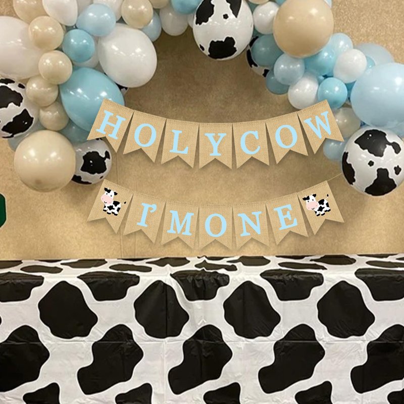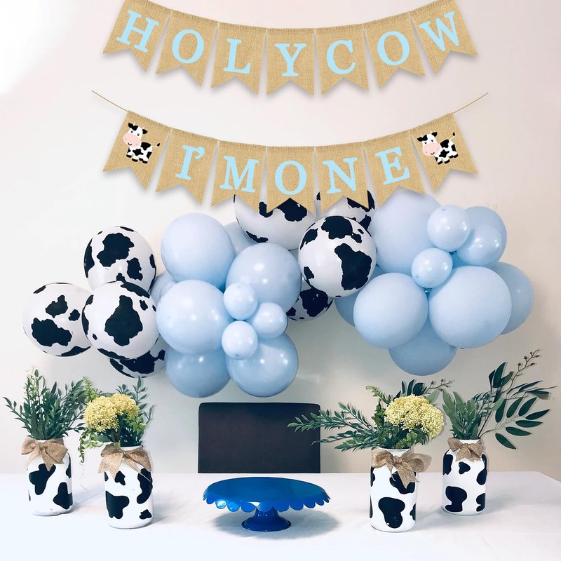 - This blue 1st birthday farm party banner is perfect for your little farmer, this cute cow decoration is the perfect addition to your holy cow birthday party or home decor
