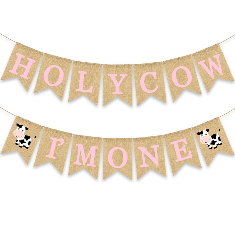 Gankbite Holy Cow I'm One Banner Farm 1st Birthday Party Decoration Barnyard Burlap Garlands Western Girl First Birthday Supplies Pink