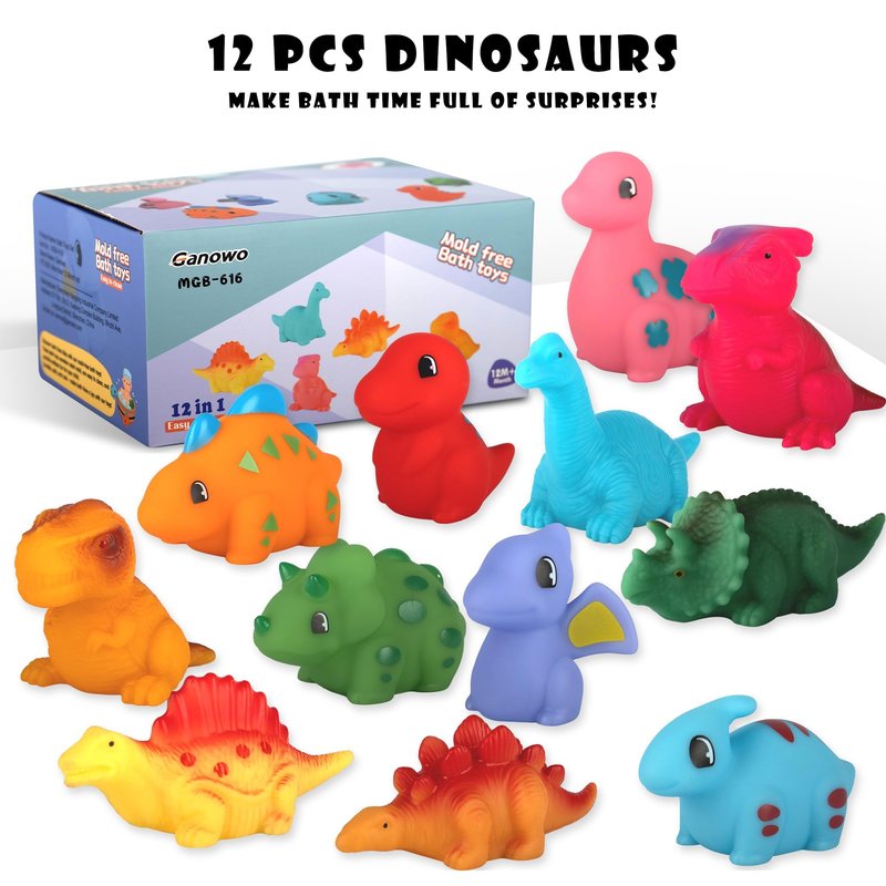 Ganowo 12PCS No Hole Dinosaur Bath Toys for Toddlers 1-3, Mold Free Baby Bathtub Pool Water Toys for Dinosaur Party Favors Birthday Christmas Easter