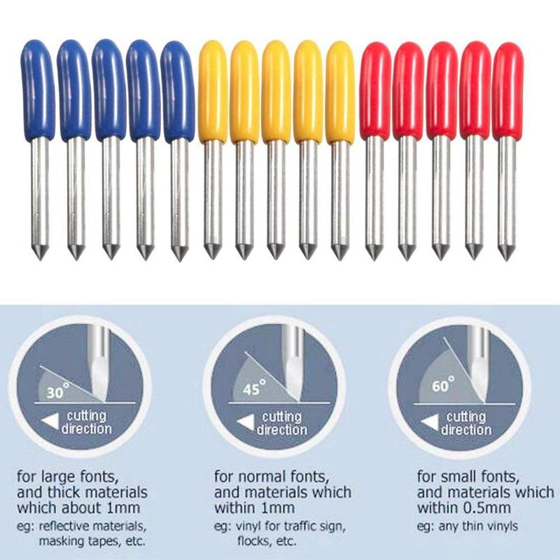 GAOHOU 15pcs 30/45/60 Degree Cutting Plotter Vinyl Cutter Blade + Holder