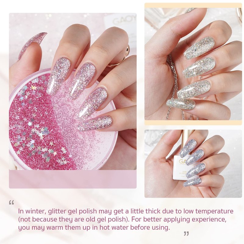 GAOY Chrome Platinum Glitter Gel Nail Polish Set of 6 Colors Including Sparkly Shiny Black Silver Pink Gel Polish Kit UV LED Soak Off Nail Polish Home DIY Manicure Nail Salon Varnish